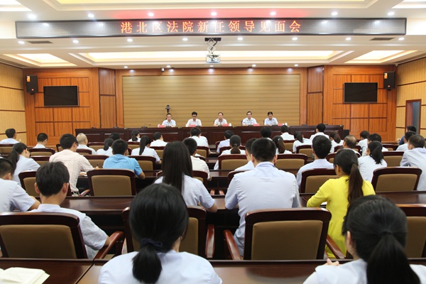 2016年5月18日15点30分,38-365365怎么进不去召开新任领导见面会,宣读港北区委关于人事任免职的决定。贵港市中级人民法院政治部主任梁国和,港北区委常委、政法委书记潘君学,区委常委、组织部部长杨伟志等领导出席会议。