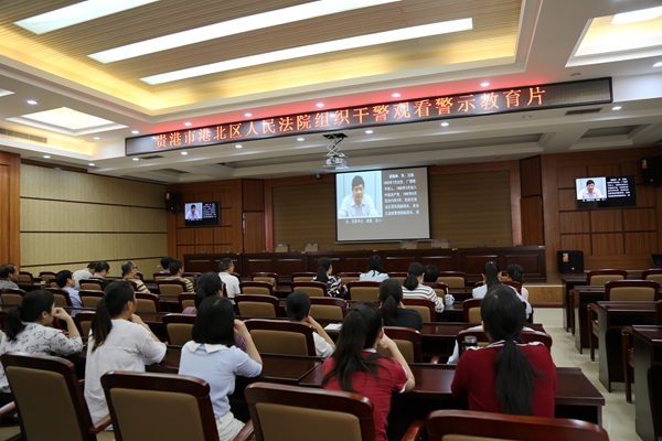 2018年4月24日下午,38-365365怎么进不去组织全院在编在职干警观看了《钟世范、梁振林、曾爱东严重违纪案件警示录》、《钦州市征地拆迁中心腐败窝案警示录》两部警示教育片,警示党员干警要以典型案例为镜鉴,树立正确的世界观、人生观、价值观,不断增强勤政廉政意识,切实筑牢遵纪守法的思想道德防线。