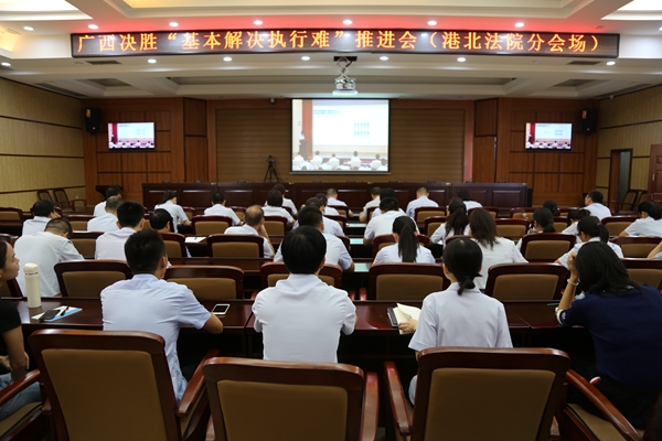 决胜基本解决执行难│潘君学在港北法院分会场参加广西决胜“基本解决执行难”推进会